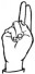 На ћирилици написано ТЕОДОРА ГУЖВИЋ састоји се из 13 слова [?]. Исписано ћириличном једноручном азбуком за глувонеме: